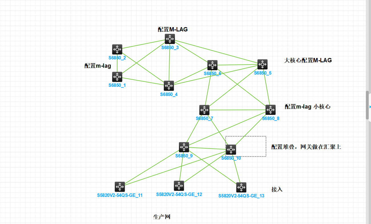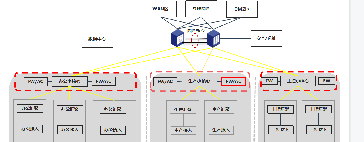 我有一张网络,生产网,办公网,数据中心网络,下面是生产配置,办公网,工控网基本一样