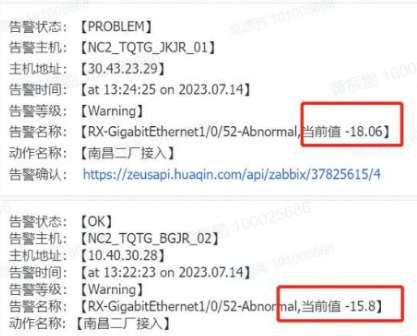 请问各位大佬,交换机上能查询光衰的变化历史记录吗,客户这边ZABIXX告警光衰过高,过一段时间后又自动恢复正常。