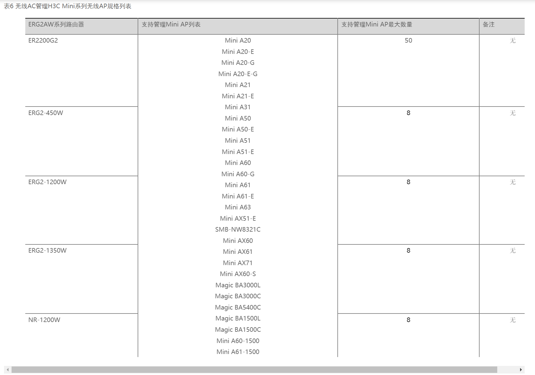 各位前辈,H3C ERG2-1350W可以支持什么系列的ap啊