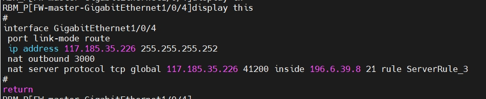 根据建议已输入 port-mapping application ftp port 41200 和 nat alg ftp