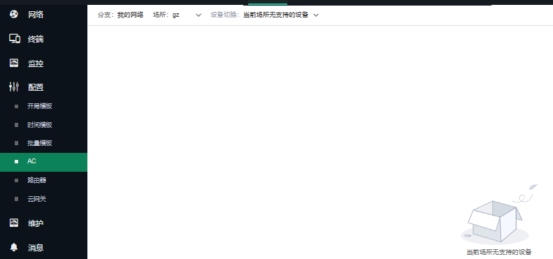AC里面有认证配置,但是场所里面只有一个MSG880,提示没有支持的设备