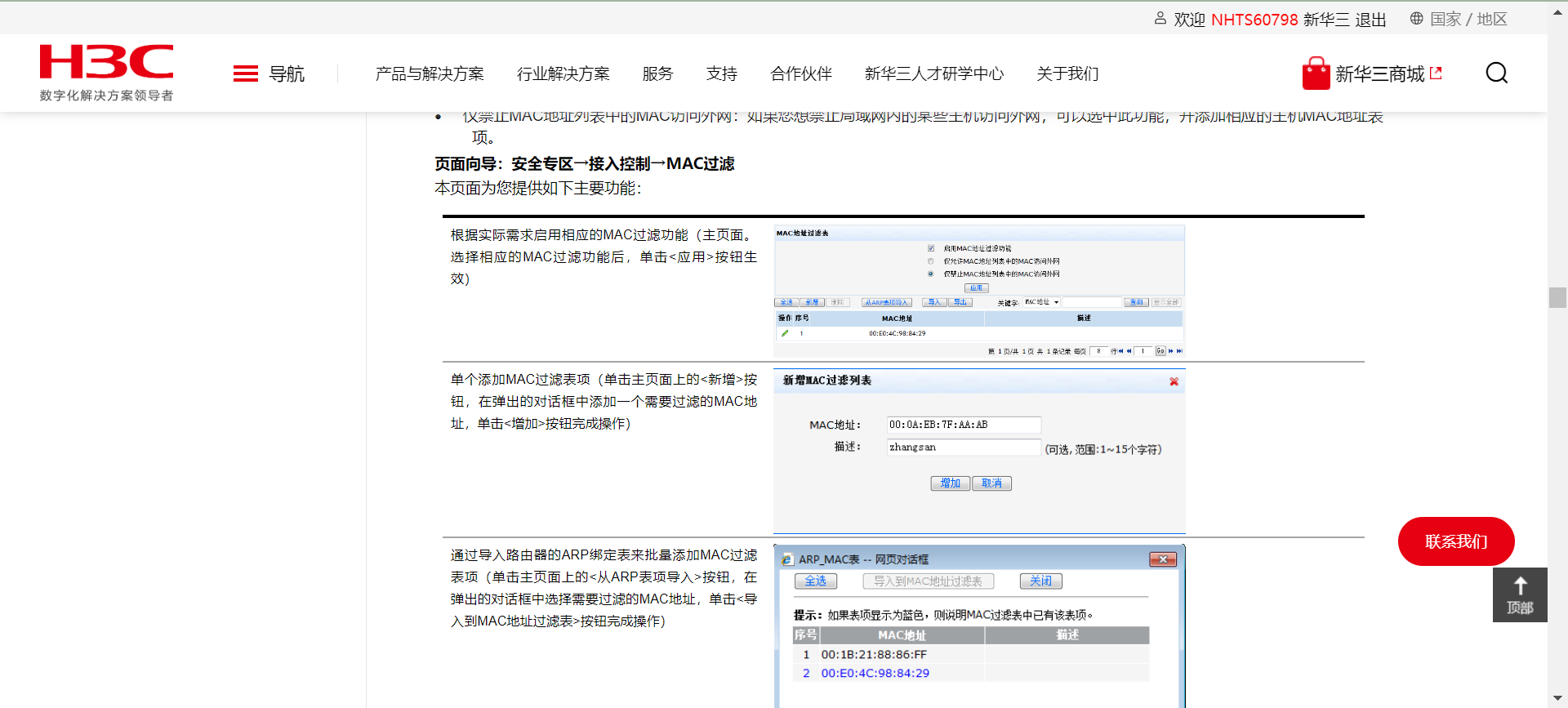 页面向导:安全专区→接入控制→MAC过滤