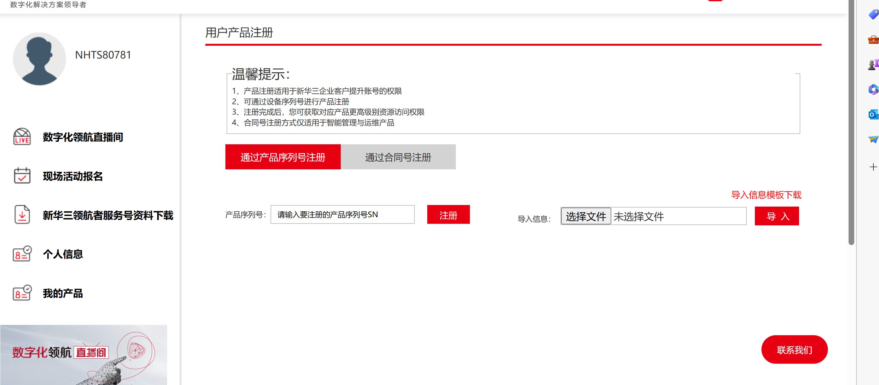 亲~检测到您登陆的账号未在http://hclhub.h3c.com进行注册