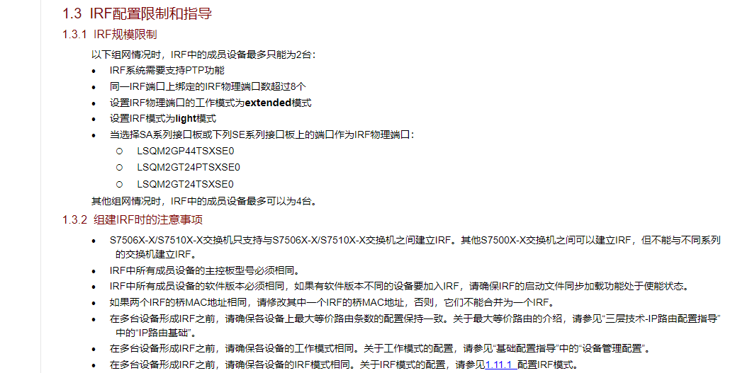 其他组网情况时,IRF中的成员设备最多可以为4台。