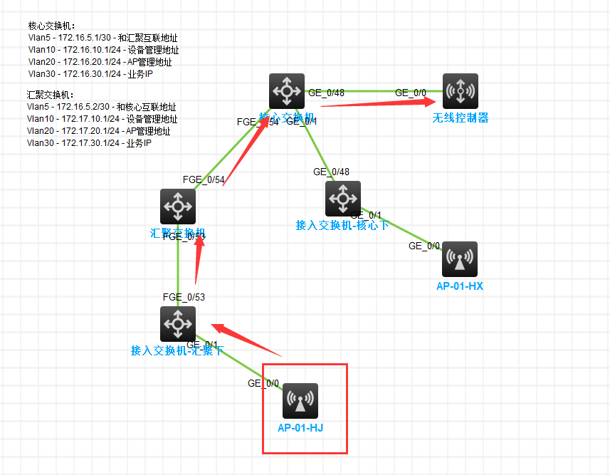 汇聚交换机dhcp上配置了 option 43 指定了核心旁边的ac但是还是无法自动发现汇聚下的ap设备