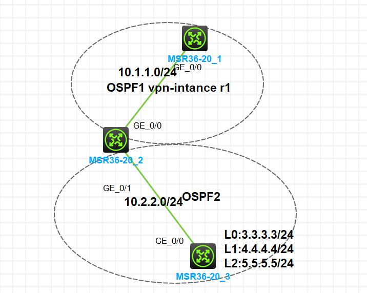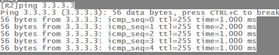 如图,当网络完成收敛后,R1上可以学到R3上的路由,但是无法ping通