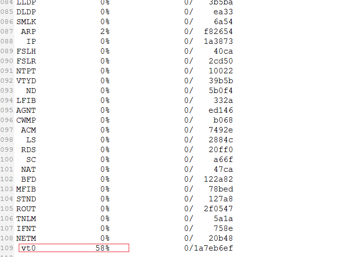 控制平面CPU达到81%,查看CPU task 发现主要占用任务为vt0