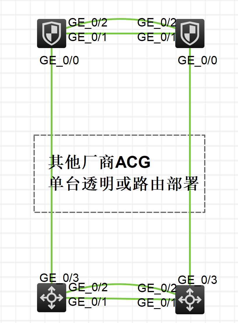 组网如图,核心交换机和防火墙都是堆叠,中间串一台其他厂商的ACG设备,我方需要配置什么策略吗(如果是透明指一条明细路由?)