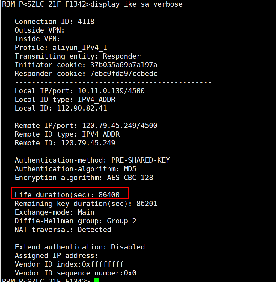 在新的IKE SA协商好之后,对等体立即采用新的IKE SA保护IPSec通信。如果有业务流,则旧IKE SA立即被清除;如果无业务流量,则旧IKE SA在10秒或硬生存周期到期后被清除。12
