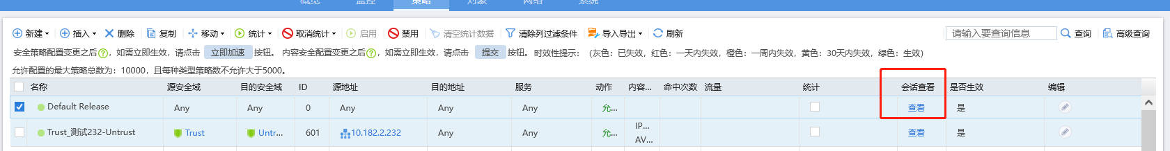 防火墙查看某条策略命中的会话