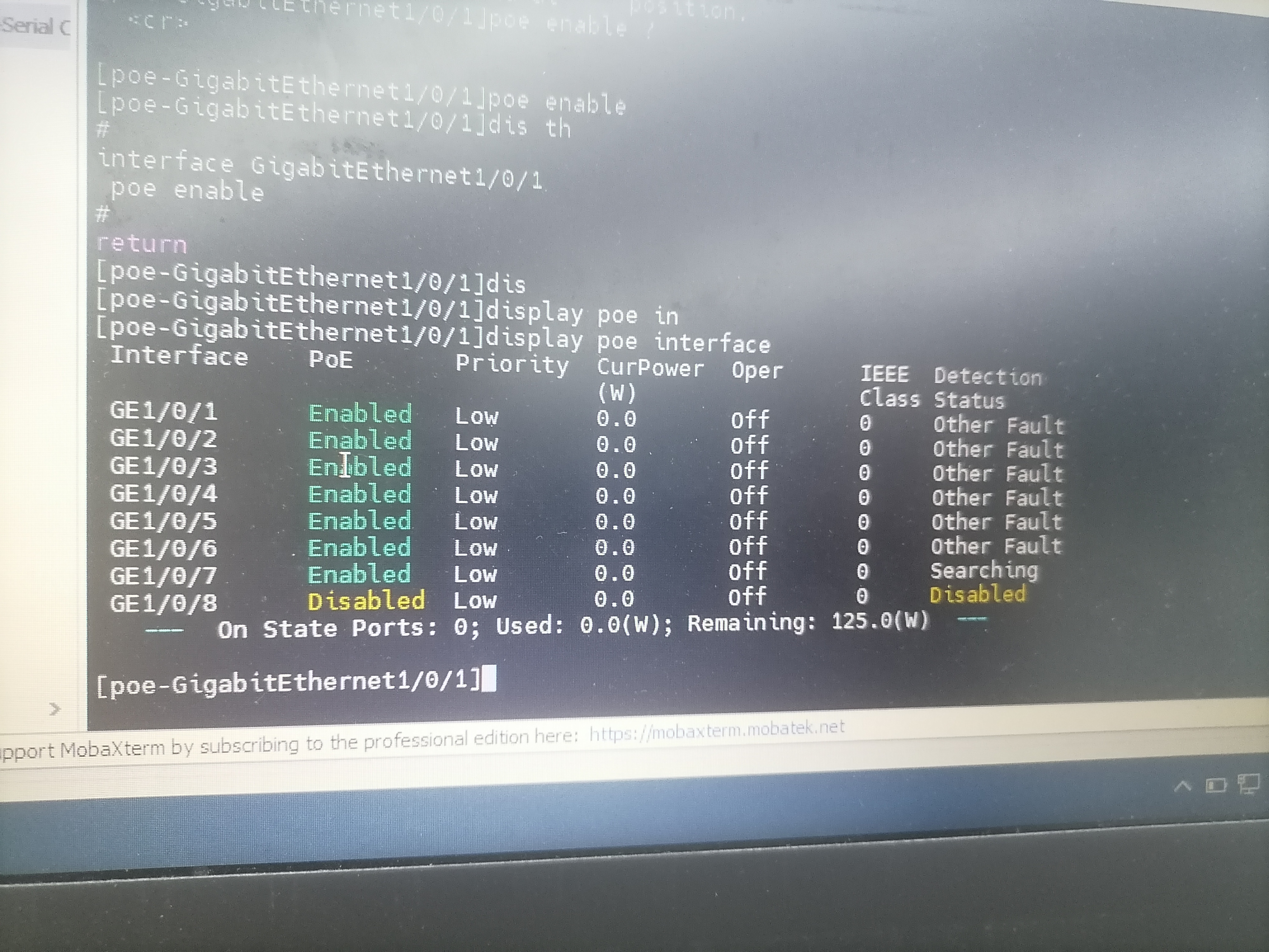 S5130S-10P-HPWR-EI POE接口不供电,状态是other fault