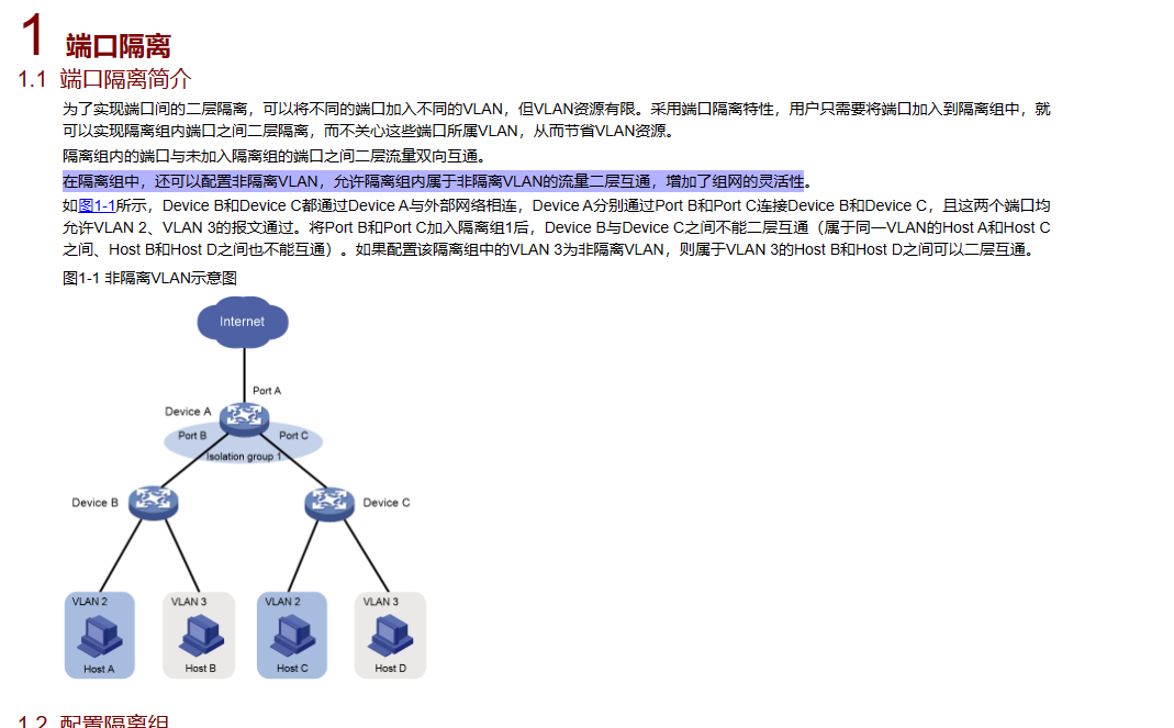 我看官网最新版本配置手册描述是可以在隔离组里配置非隔离vlan的,但是我没找到相关的命令和配置举例,这个能实现吗