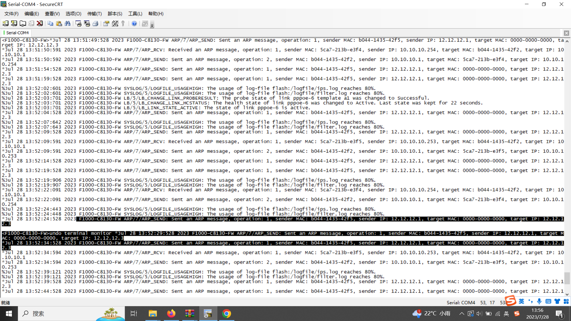 之前是光口,换成这个网口了。防火墙日志里没有原因