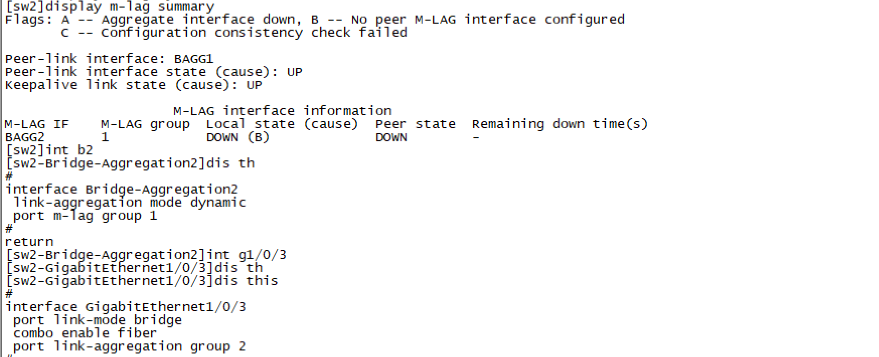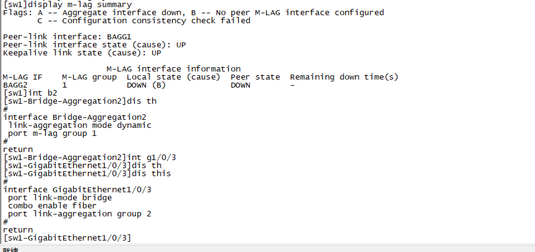 请教一下关于M-LAG的配置,如图所示,SW1和SW2配置M-LAG,但是所选的接口G1/0/3,不知道为什么在聚合组2中未选中。(SW3也配置了聚合组,加入了1,2口。)