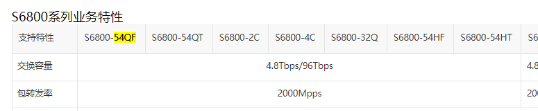 S6800-54QF的交换容量(Tbps):和 包转发率(Mpps)是多少