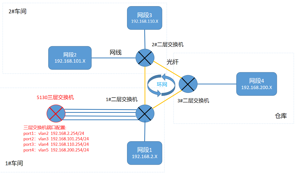 网关放到这个5130交换机上可以实现全网vlan间互通;