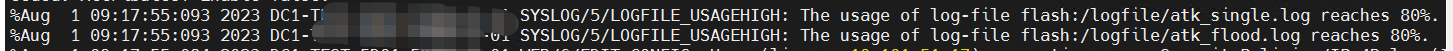 %Dec 15 13:40:22:086 2021 WF_HX_F1080 SYSLOG/5/LOGFILE_USAGEHIGH: The usage of log-file flash:/logfile/ips.log reaches 80%.