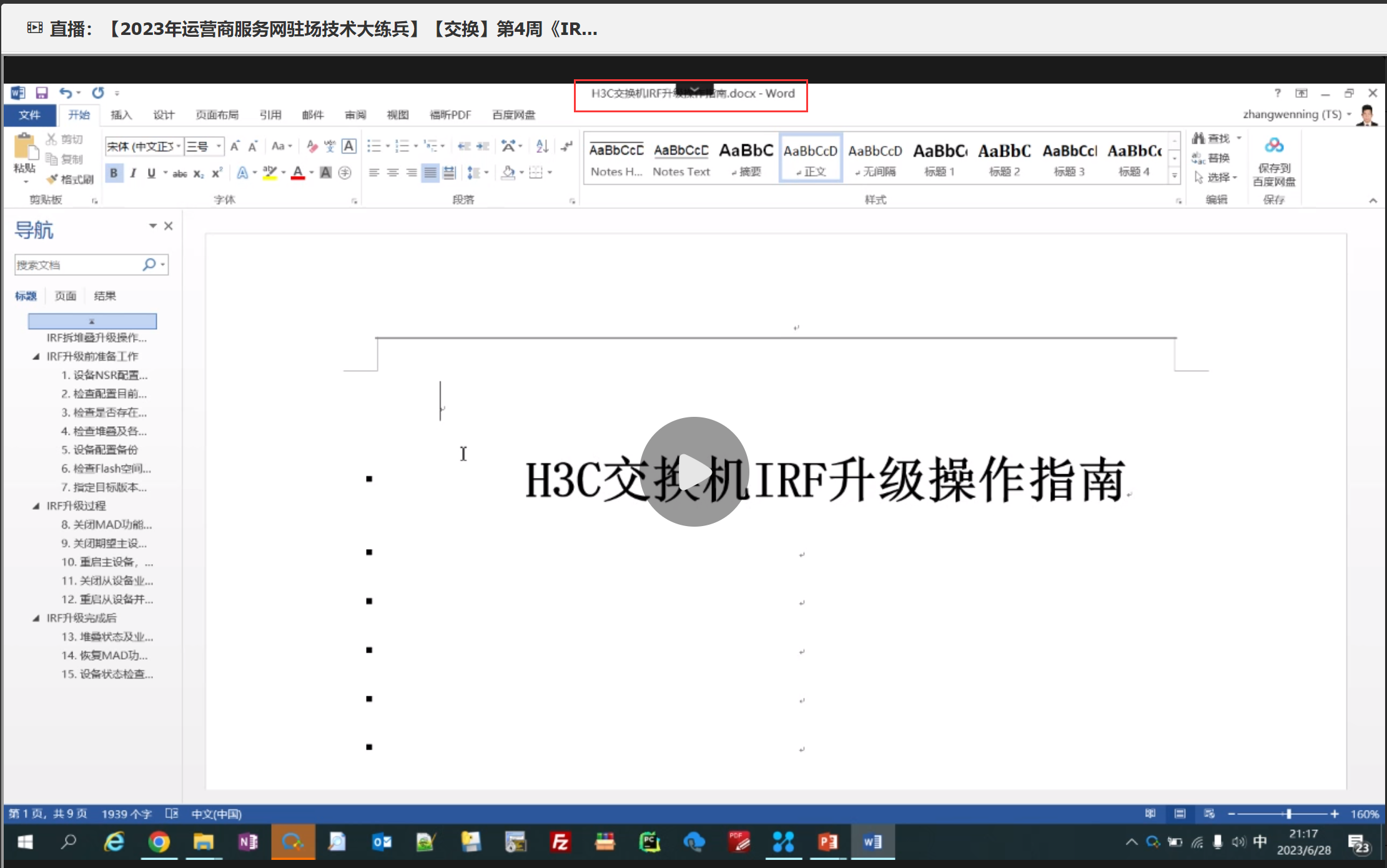 谁有这份文档?要做现网IRF升级,需要写实施方案