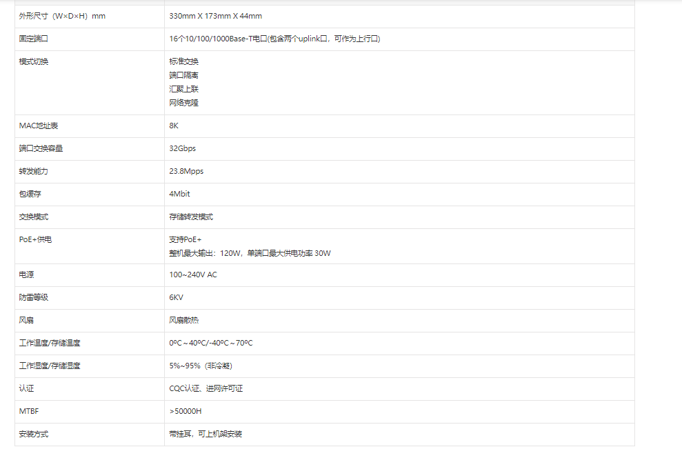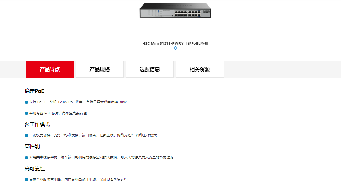 H3C Mini S1216-PWR全千兆PoE交换机产品参数