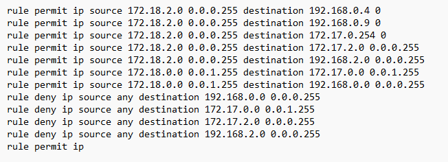 包过滤下发在核心连接防火墙的上联物理接口上,进出方向都有调用。未生效规则:只允许允许172.18.2.0/24网段访问172.17.2.0/24网段,配置该规则后其他网段仍旧可以访问172.17.2.0/24网段,有尝试过在防火墙上做包过滤单独deny非法网段,但是依旧未生效。