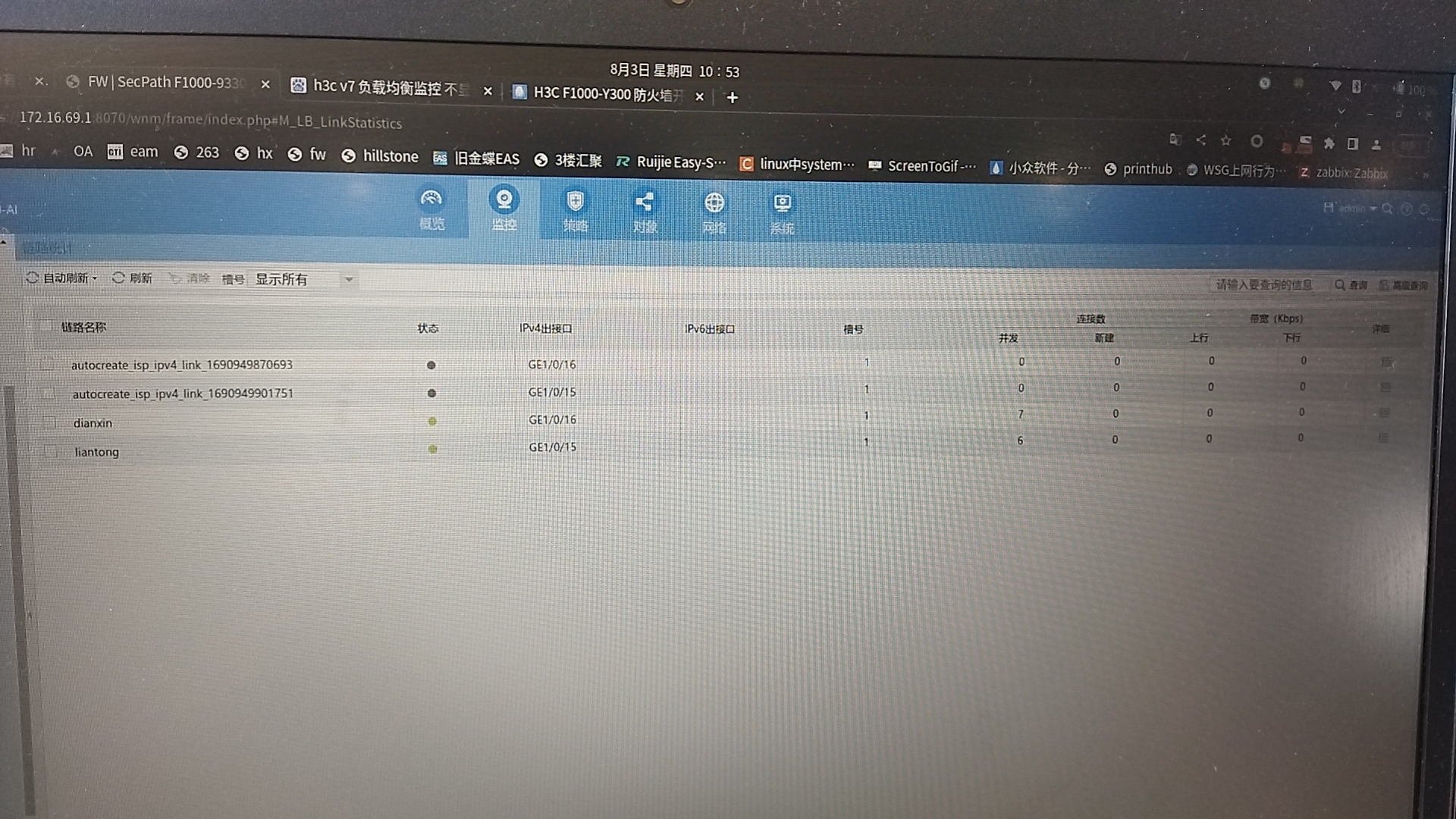 F1000-9330-AI,再web配置出方向负载均衡后,在web的负载均衡监控看不到任何信息