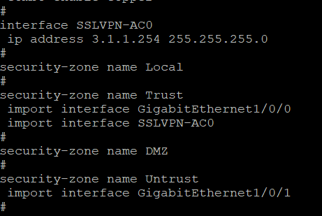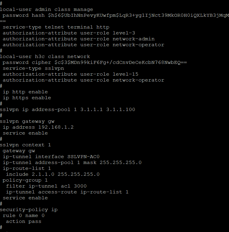 组网如图所示,框内部分为公网部分,MSR01上模拟出口路由做了NAT,防火墙F1602模拟SSLVPN网关,MSR03模拟需要访问的内网终端,SSLVPN网关可以ping通,但是inode建立vpn失败,debug为下图所示。关键配置如下,地址和acl等都无误。