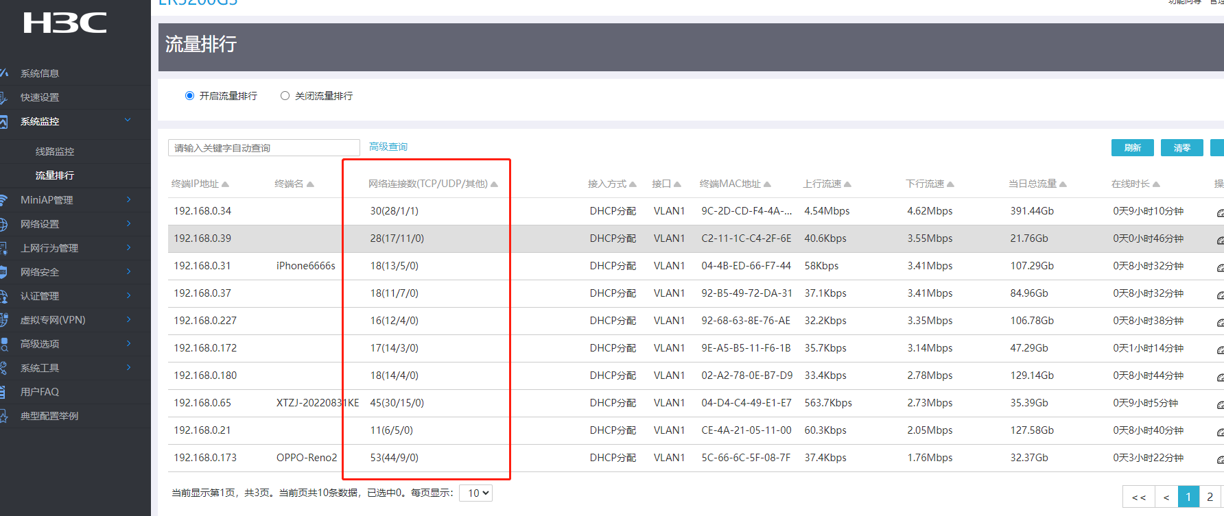 只能看到内网单独IP的连接数,请教再哪里看到连接总数?