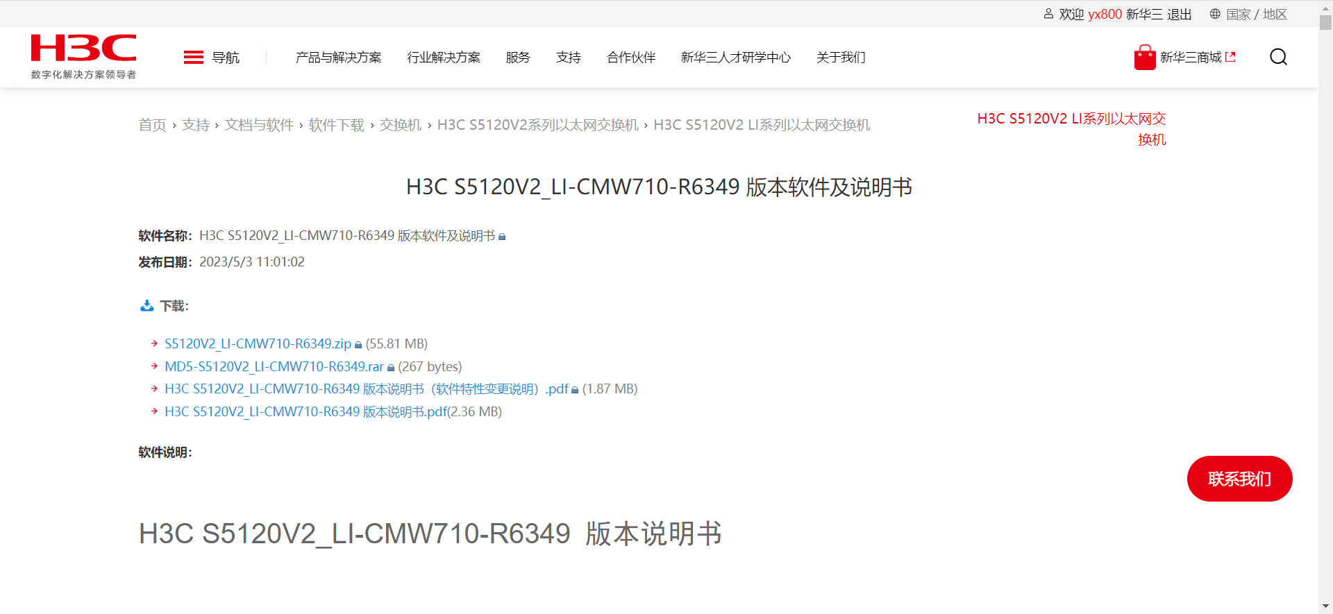 软件版本下载连接:https://www.h3c.com/cn/d_202305/1838319_30005_40.htm