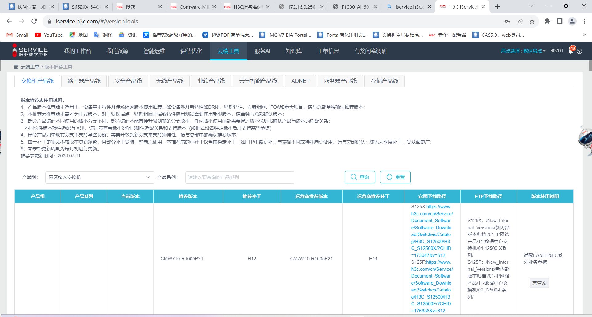 推荐版本可以上iservice查看,iservice网址:https://iservice.h3c.com/#/home
