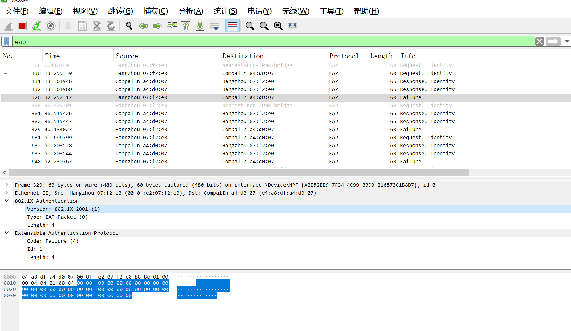 inode认证失败,802.1x认证,抓包显示如下,什么原因