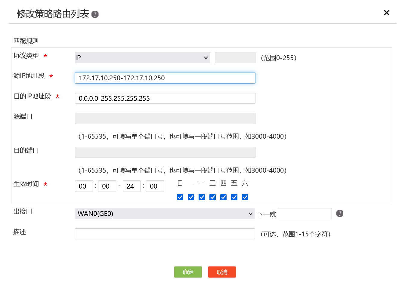 目的IP地址段: 0.0.0.0-255.255.255.255