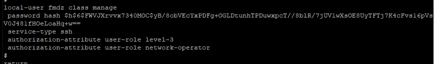 authoriza]authorization-attribute user-role network-admin   #或者配置为管理员权限;
