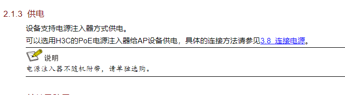 · GE1/PoE++ · GE2/PoE++ | · IEEE802.3 · IEEE802.3u · IEEE802.3at | 作为设备的上行接口,接入Internet或城域网,可同时作为PoE供电接口。当设备为Fit AP模式时,对应MAP文件中的GE1/0/1~GE1/0/2,对应AC配置中的gigabitethernet 1~gigabitethernet 2 |