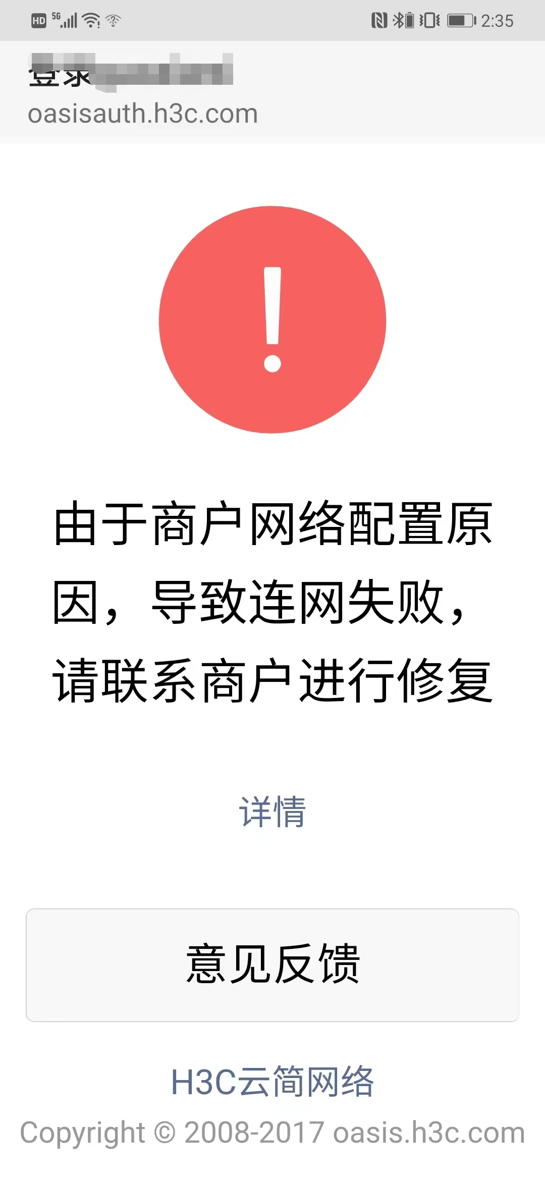 无线配置的portal认证,现在手机连上无线认证的时候提示:由于商户网络配置原因,导致连网失败