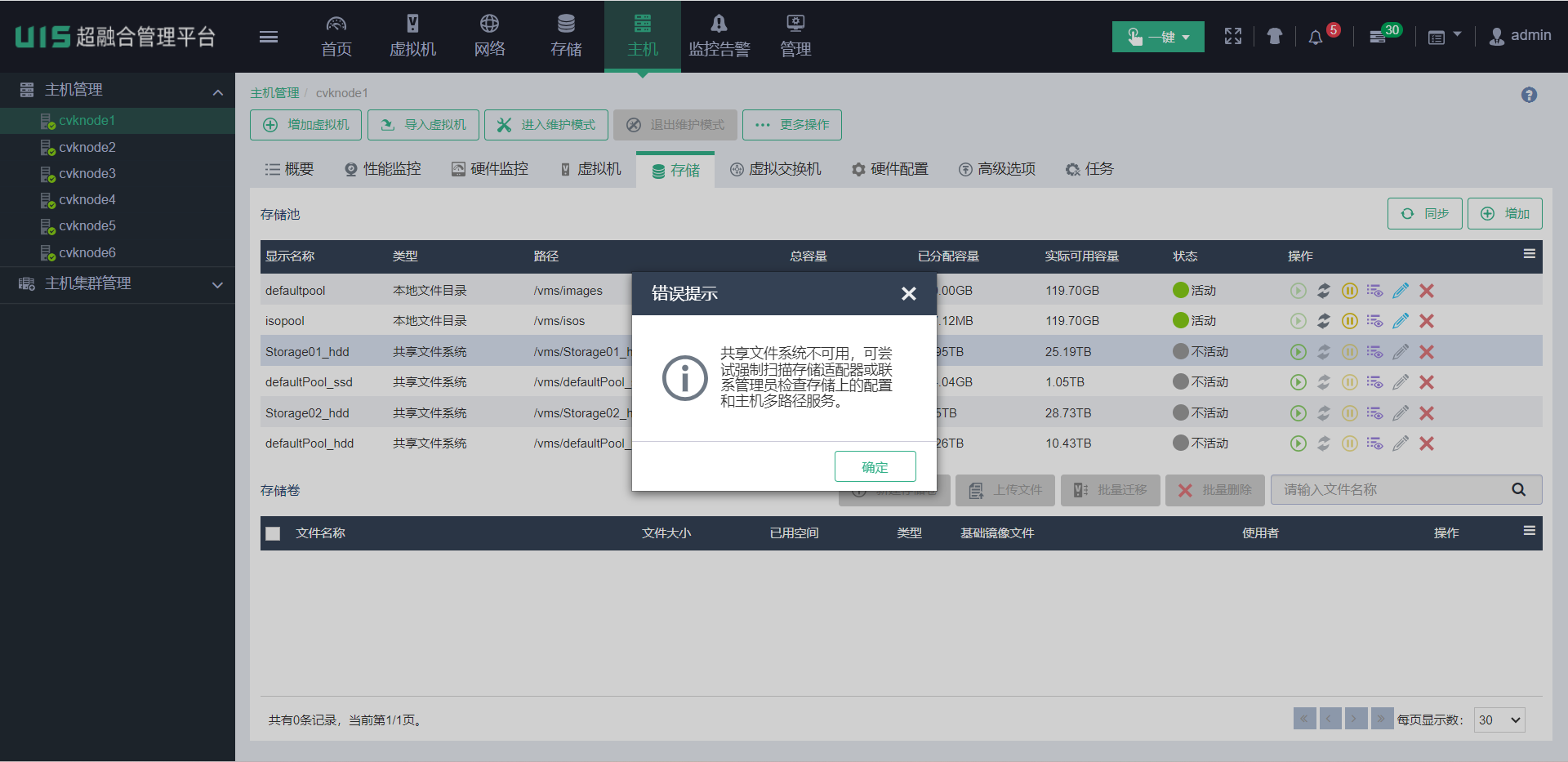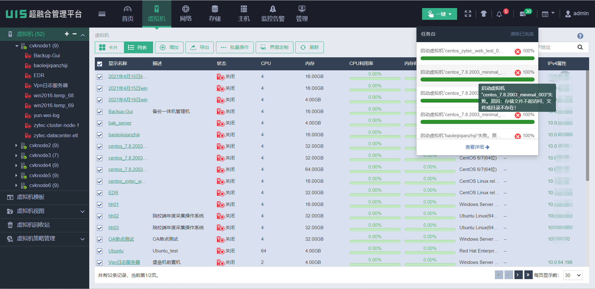 UIS超融合管理平台虚拟机无法启动(存储文件不能访问,文件或目录不存在)