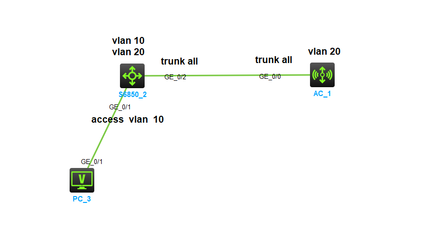 大佬们,如图所示交换机和AC之间是放通vlan all、AC上面只存在vlan20 没有vlan 10 .
