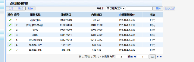# 以上配置完成后,外网Host能够通过NAT地址访问各内网服务器。通过查看如下显示信息,可以验证以上配置成功。