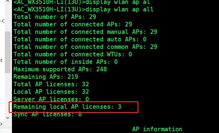 在命令行中输入display wlan ap all 后