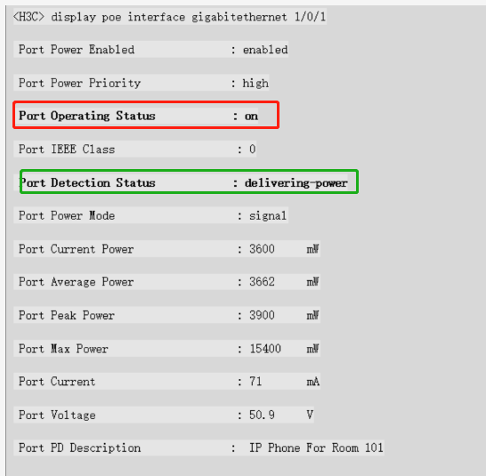 ? power-limit:正在受限供电,PD要求功率大于配置功率,PSE仍按配置功率供电
