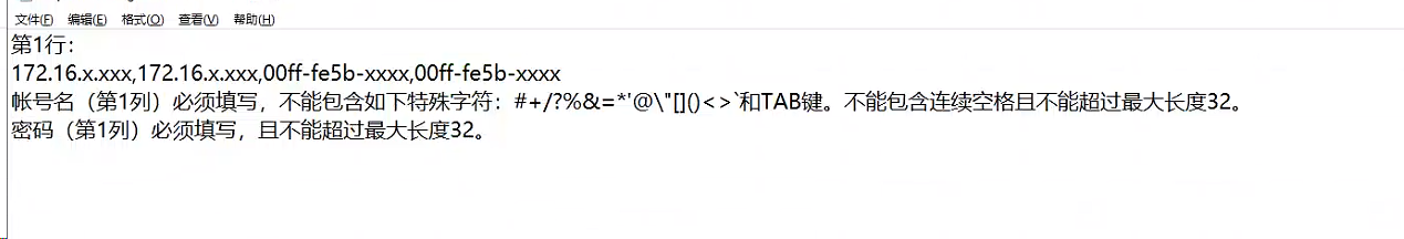 imc导入认证用户失败,在接入用户管理哪导入,提示报错如下图,导入模板里面也没有报错里面说的哪些,xxx是我已经替换掉了,有大佬知道怎么回事吗?