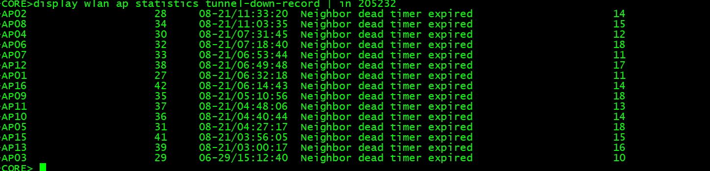 display wlan ap statistics tunnel-down-record