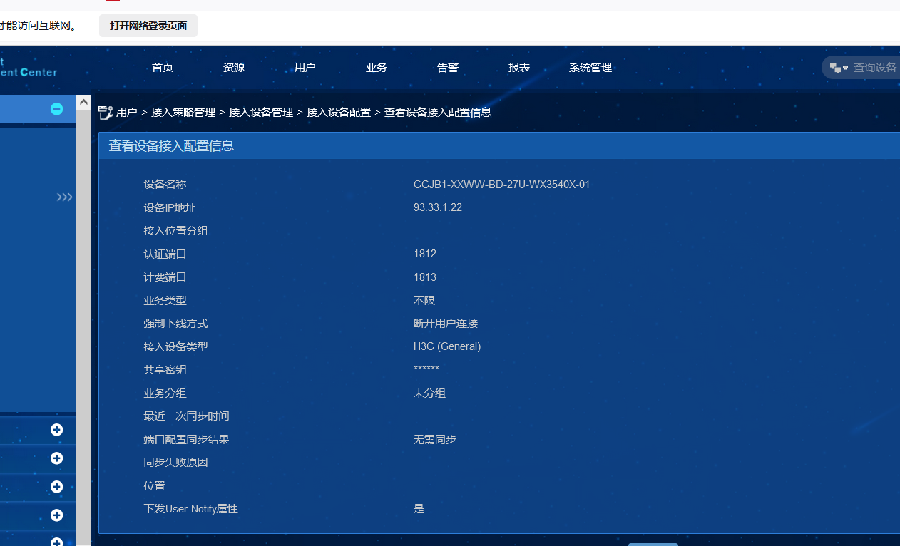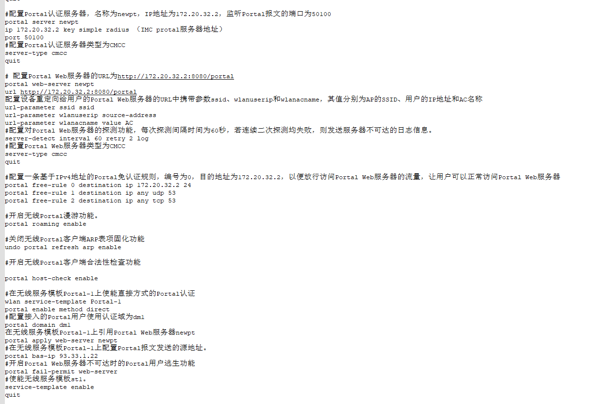 按照V9手册配置AC远程portal对接IMC。服务器类别用的是CMCC。第一天配置完都可以正常连接使用。第二天再次连接提示向设备发送请求超时,认证不通过.目前确定账号用户密码无问题.检查了配置不知道哪里有问题.或者IMC配置问题 .找大佬看下