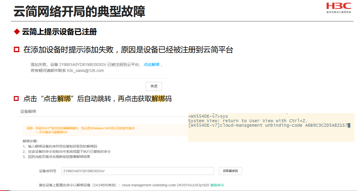 若某些设备因其他云简网络账户误操作而被注册到云简网络,致使当前设备无法增加,可通过设备解绑功能解除设备与账户的绑定关系,而后重新增加设备。