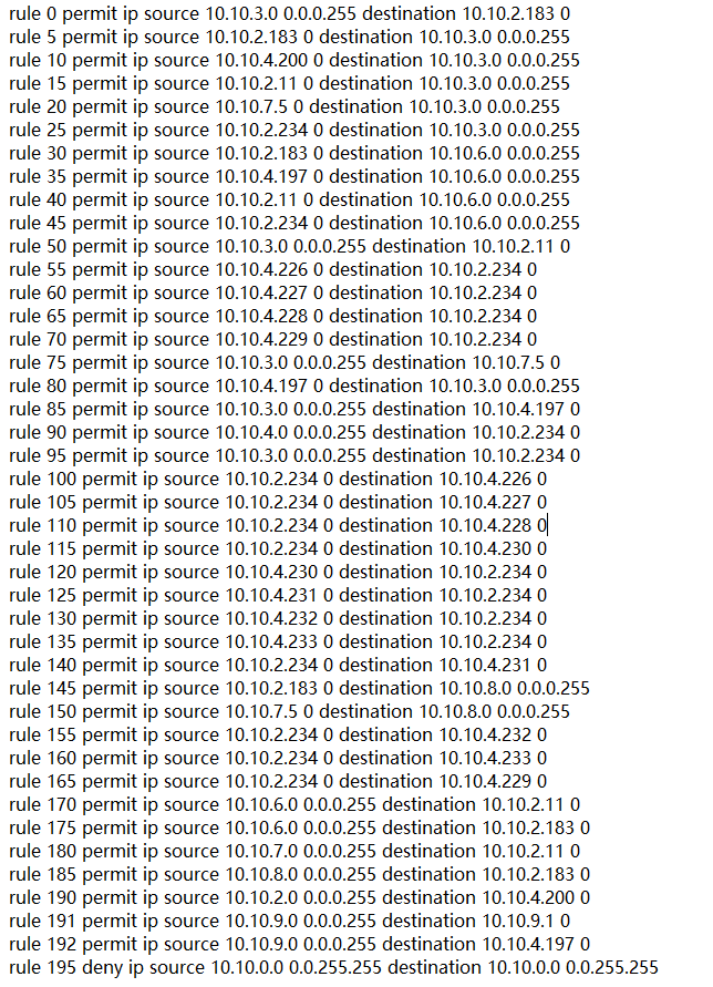 rule 100 permit ip source 10.10.2.234 0 destination 10.10.4.226 0