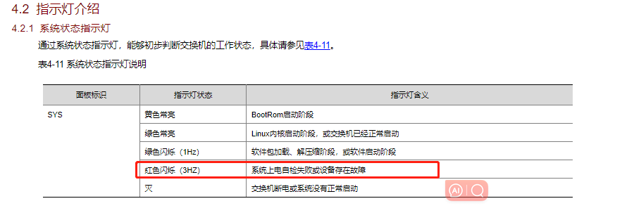 S5130 series里面接了不同ip网段的设备,其中一个网段暂无法使用,sys报红灯,怎么处理或什么原因?