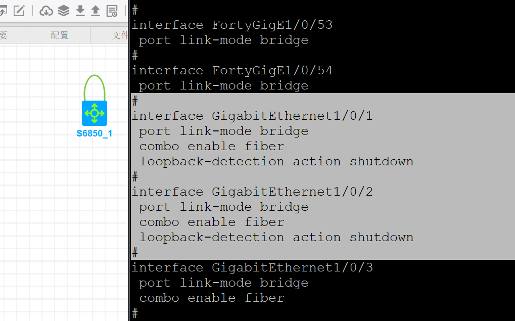 [H3C-GigabitEthernet1/0/1]loopback-detection action shutdown //当检测到环路时,环路检测会将此端口关闭