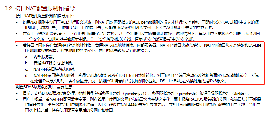 2、如果公网接口下既配置了nat static,也配置了nat server 且配置有冲突,以哪个为优先?