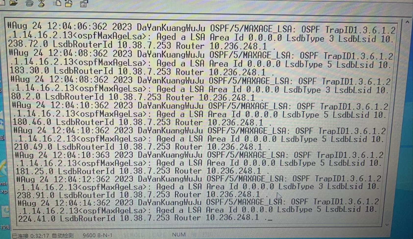 路由器LSDB中的LSA已经达到最大老化时间,可能的原因是OSPF引入的路由被删除,或OSPF接口Down。