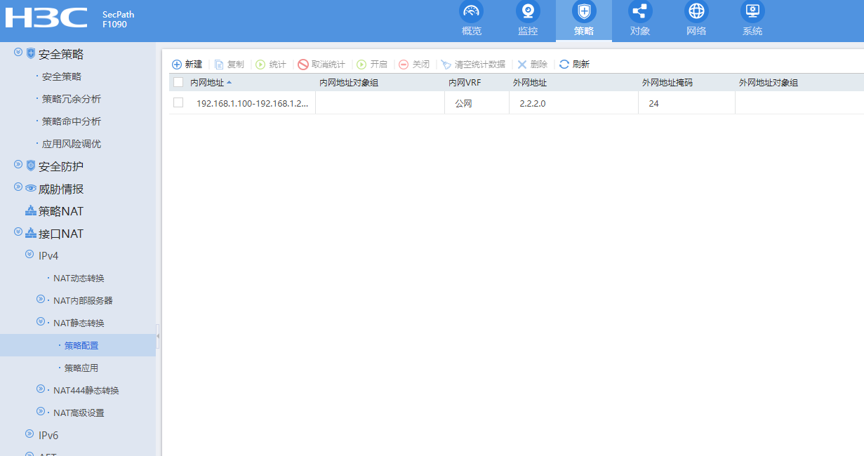 h3c f100-c-g2是否支持静态地址转换,比如用户网段192.168.10.0,映射成172.19.53.0,访问172.42.5.36与172.19.52.0,web页面上是怎么配置的