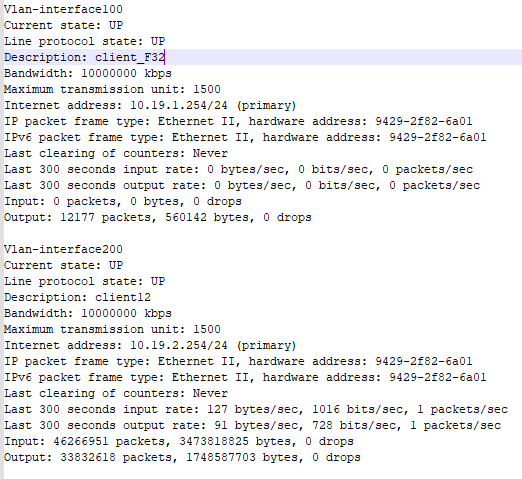 S7506X交换机display interface查看到的vlan if接口mac地址相同,如下: